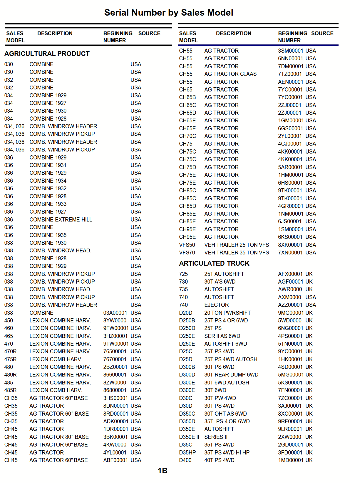 | CH70C | AG TRACTOR | 2YL00001 | USA | 1993 | 3306 08Z |