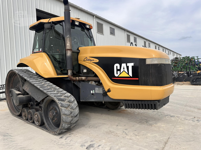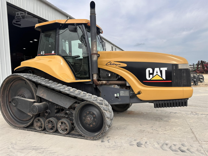 2001 Caterpillar Challenger CH45 w/ 7,113hrs 200hp PTO Cat 3116 403-c.i. 6-cyl Turbo Diesel 16-speed Funk PowerShift Tracks: 18-in Hydraulics: 4-valve Hitch: Cat III 3-point w/ Quickhitch PTO: 1,000-RPM Drawbar: Factory Hammerstrap Weights: 15 Front Factory Suitcase Cab: Air Seat, A/C