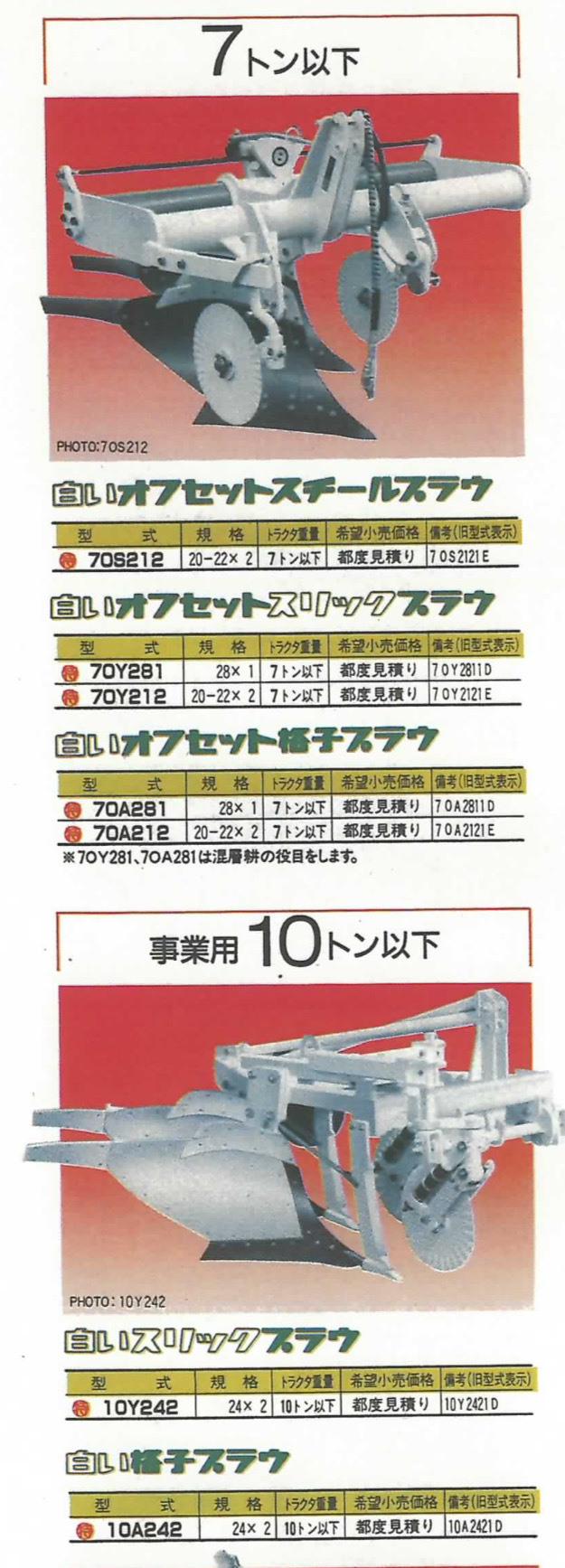 モールドボードは草地更新用の24"、という点は共通している。