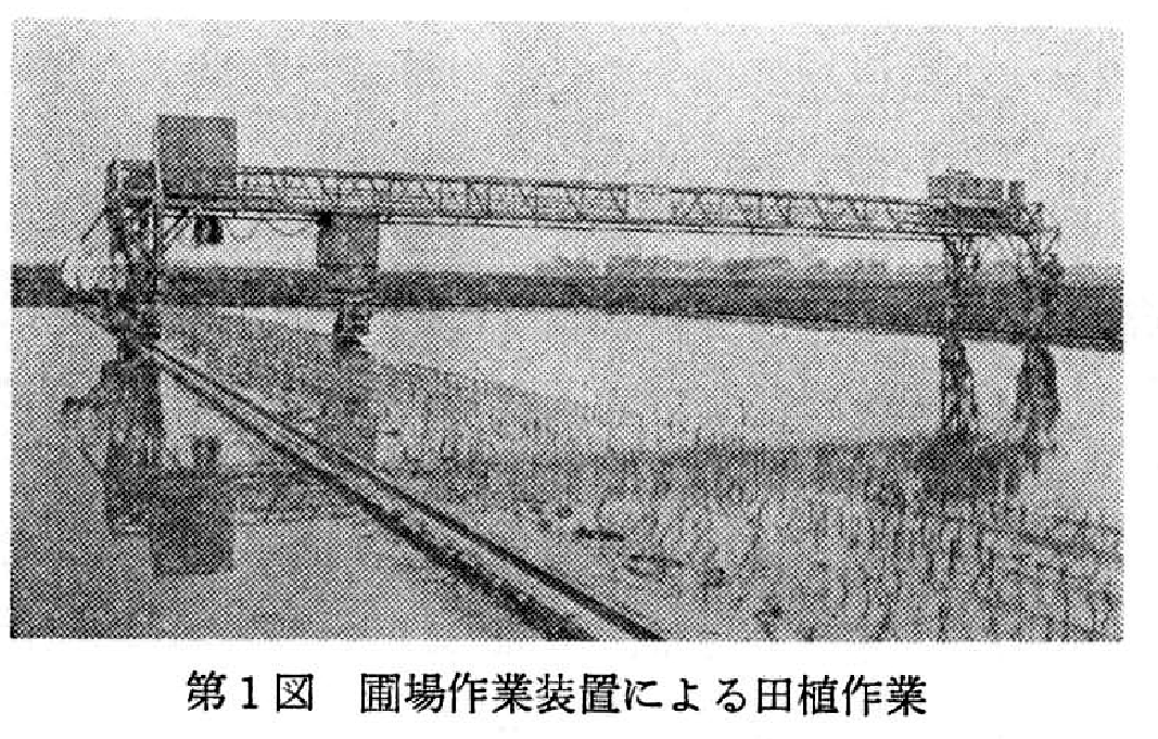 この条件にかなう圃場作業の装置化として,門型クレーンに似た圃場作業装置が考えられた. 1970年農業機械化研究所で水田作業を対象とした圃場作業装置が作られ3),1972年イギリスのNIAEでは連棟ハウス内の各種作業用装置4),1974年島根大学農学部農場には温室内汎用作業装置が設置された. 当農業研究センターには1981年筑波移転時に,農業機械の実験装置,そして自動化無人作業技術研究用装置として圃場作業装置"ガントリー"が設置された